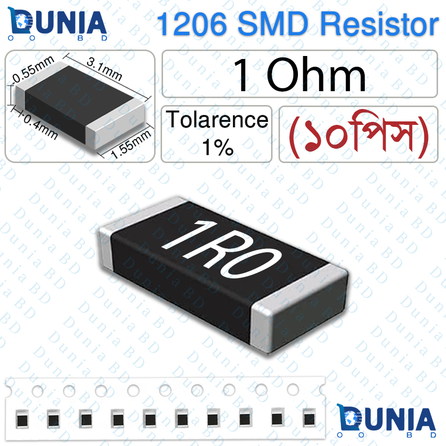Buy 1 Ohm 1R0 1206 SMD Resistor 1/4W ±1% Tolerance in Bangladesh from online at [dunia_link].