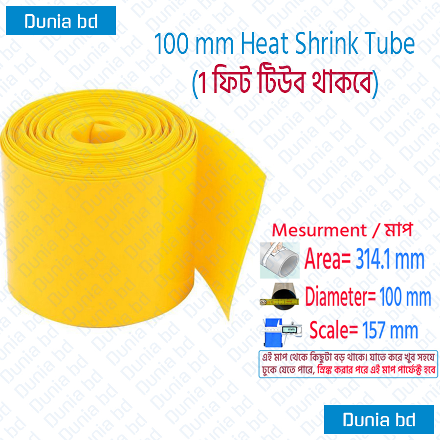 In Bangladesh, you can get original 100mm Heat Shrink Tube Polyolefin Tube From Dunia.com.bd . We have a large collection of latest Heat Shrink Tube to purchase. Order Online at our website Or Visit our warehouse to get your product at lowest price.