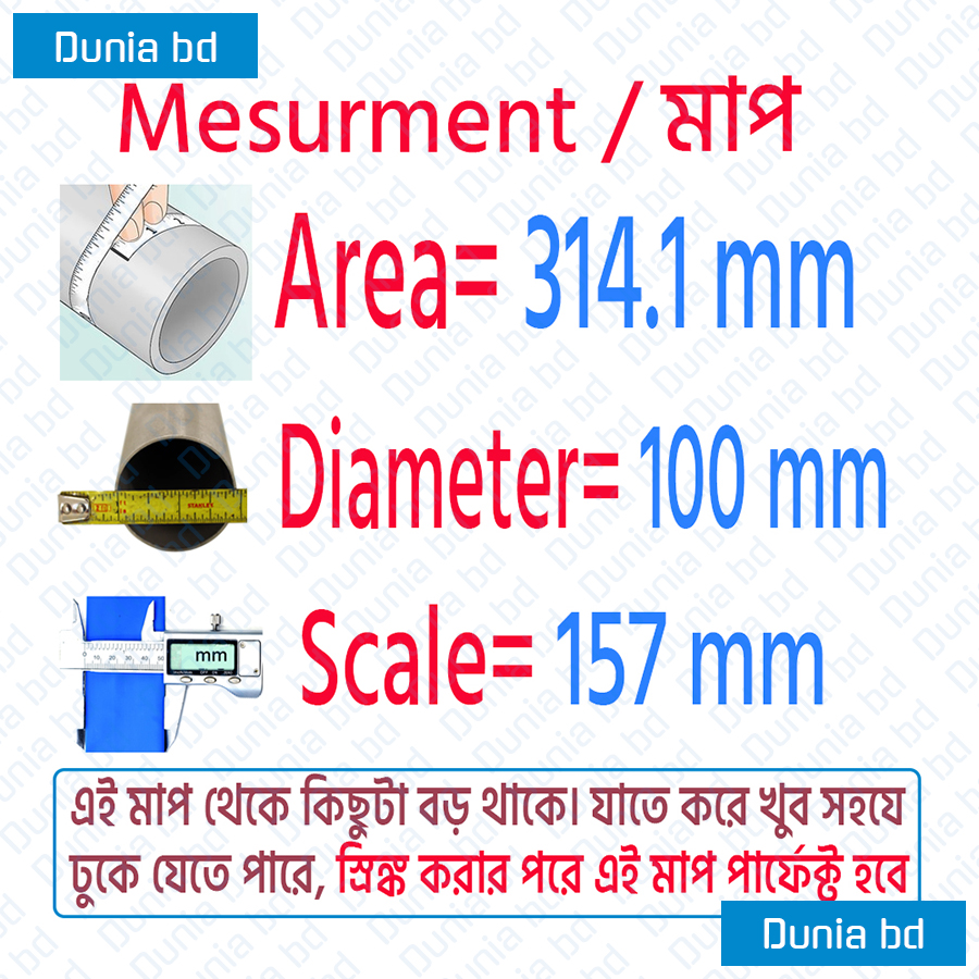 The latest price of 100mm Heat Shrink Tube Polyolefin Tube in Bangladesh is 120 taka for 1 feet 100mm heat shrink tube of different selective color bundles. You can buy the 100mm Heat Shrink Tube Polyolefin Tube at better and cheaper price from our website and also you can visit our warehouse between work hours 10am to 8pm.