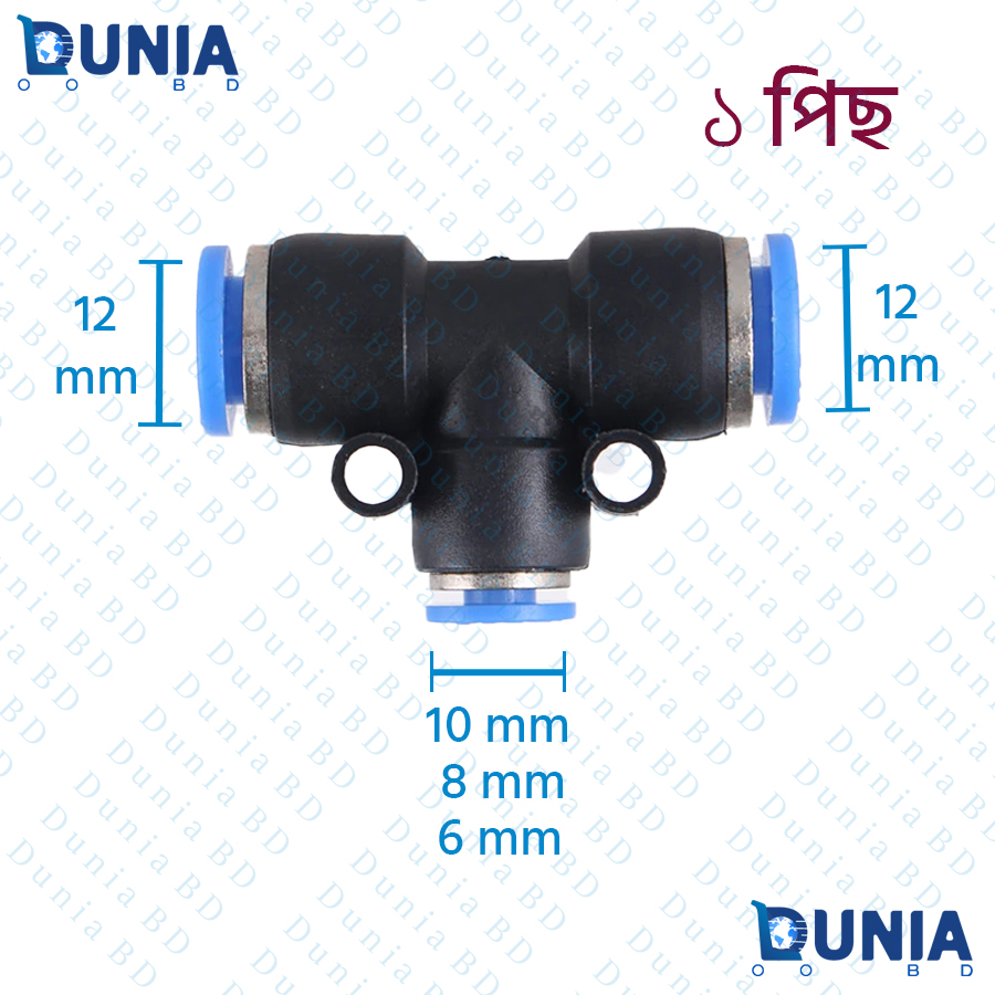 The latest price of 12mm Reducing Tee Pneumatic Quick Reducer Connector in Bangladesh starts from [product_price id=”5713″] to [product_price id=”5717″] taka for one piece of 12mm to 10mm, 12mm to 8mm, 12mm to 6mm reducing tee. You can buy this product at a better and cheaper price from our website and also you can visit our warehouse between work hours 10am to 8pm.