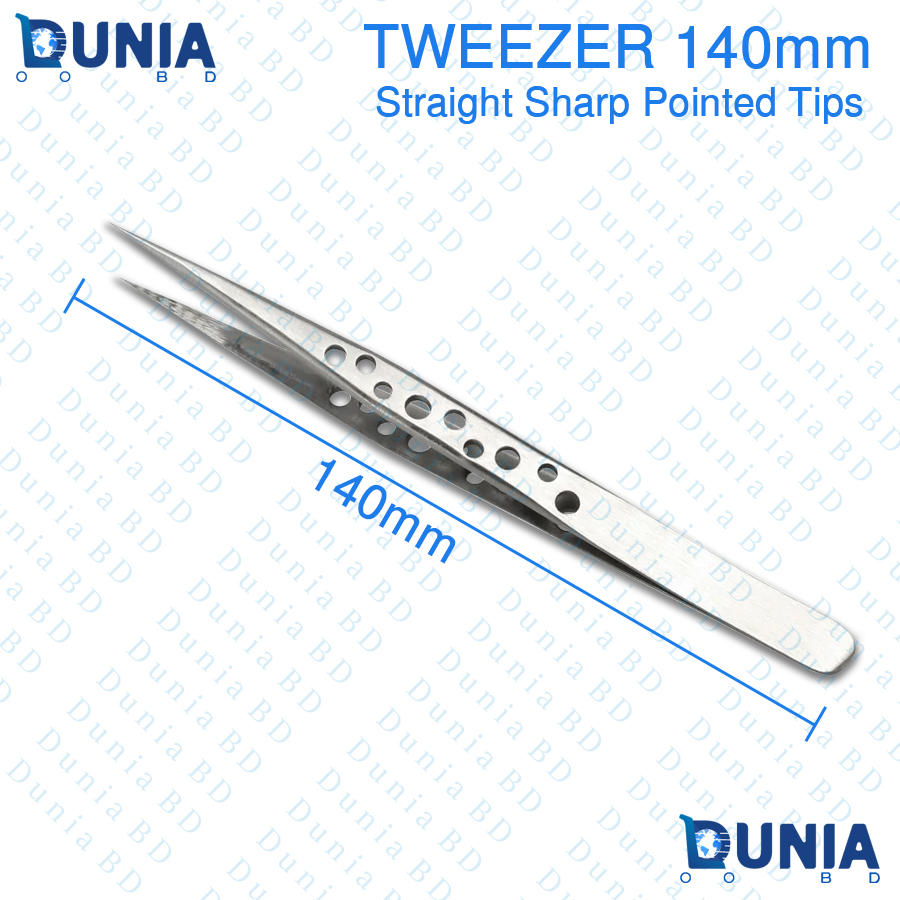 What is the price of 140mm Precision Stainless Steel Tweezer Straight Sharp Pointed Tips with Vented Holes for Electronics Repair & PCB Work in Bangladesh?