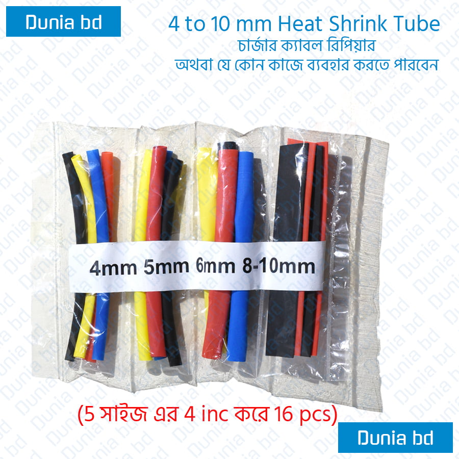 In Bangladesh, you can get original 4mm to 10mm Combo Pack of  Heat Shrink Tube Polyolefin Tube From [dunia_link] . We have few collection of latest [selected_category] to purchase. Order [parent_category] Online at our website Or Visit our warehouse to get your product at lowest price.