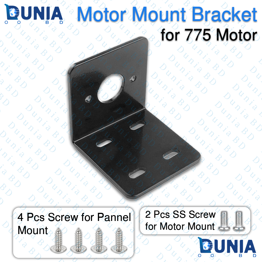 - The 775 Motor Mount Bracket is an essential component for DIY enthusiasts and robotic engineers. Crafted from premium alloy steel, this bracket provides a rock-solid foundation for high-torque 775 motors, preventing vibrations and ensuring precision during operation. The sleek black anti-rust finish not only looks professional but also extends the life of the component in various environments. Whether you are building a DIY CNC machine, a powerful drill press, or a custom RC vehicle, this L-shaped mounting base offers the stability you need. The package comes complete with all necessary screws, making installation quick and hassle-free.