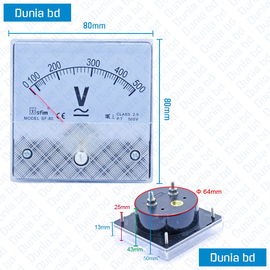 The latest price of Analogue AC Volt Meter Square Panel Meter 80x80mm sfim SF-80 in Bangladesh starts from [product_price id=”1652″] taka for 1 Pcs Analogue AC Volt Square Panel Meter. You can buy this product at a better and cheaper price from our website and also you can visit our warehouse between work hours 10am to 8pm.