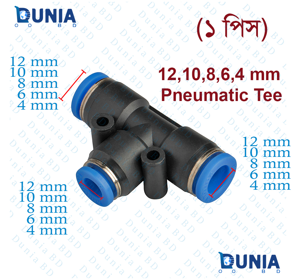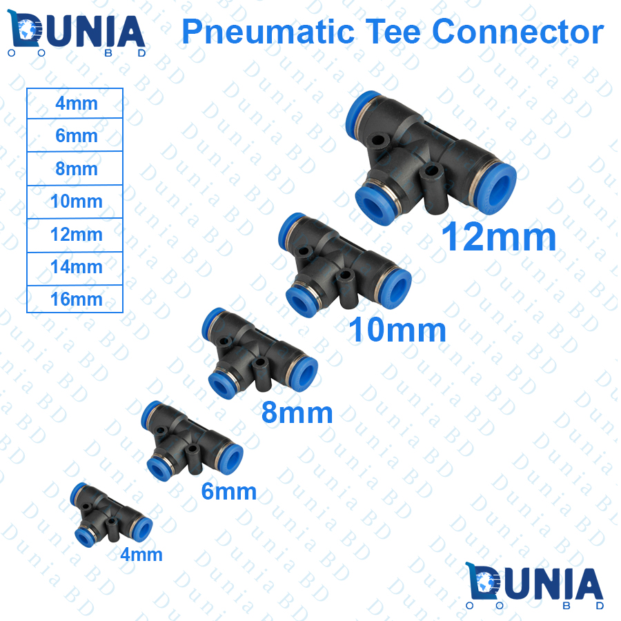 Buy Pneumatic Fittings Tee Quick Connector T Type 3-Way For PE-4 (4mm) PE-6(6mm) PE-8(8mm) PE-10(10mm) PE-12(12mm) Tube in Bangladesh from online at [dunia_link].