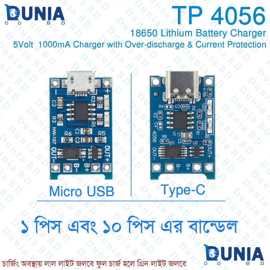 Buy TP4056 Micro USB Type C 5V 1A 18650 Lithium Battery Charger With Protection in Bangladesh from online at [dunia_link].